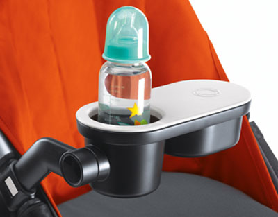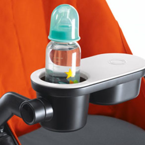 Su tapa deslizante gira para permitir que el niño acceda a su comida, mientras que el portavasos evita que las bebidas se derramen. Las dos piezas de la bandeja se mantienen verticales en una posición segura, incluso cuando la silla está reclinada para echar una siestecita después de comer.